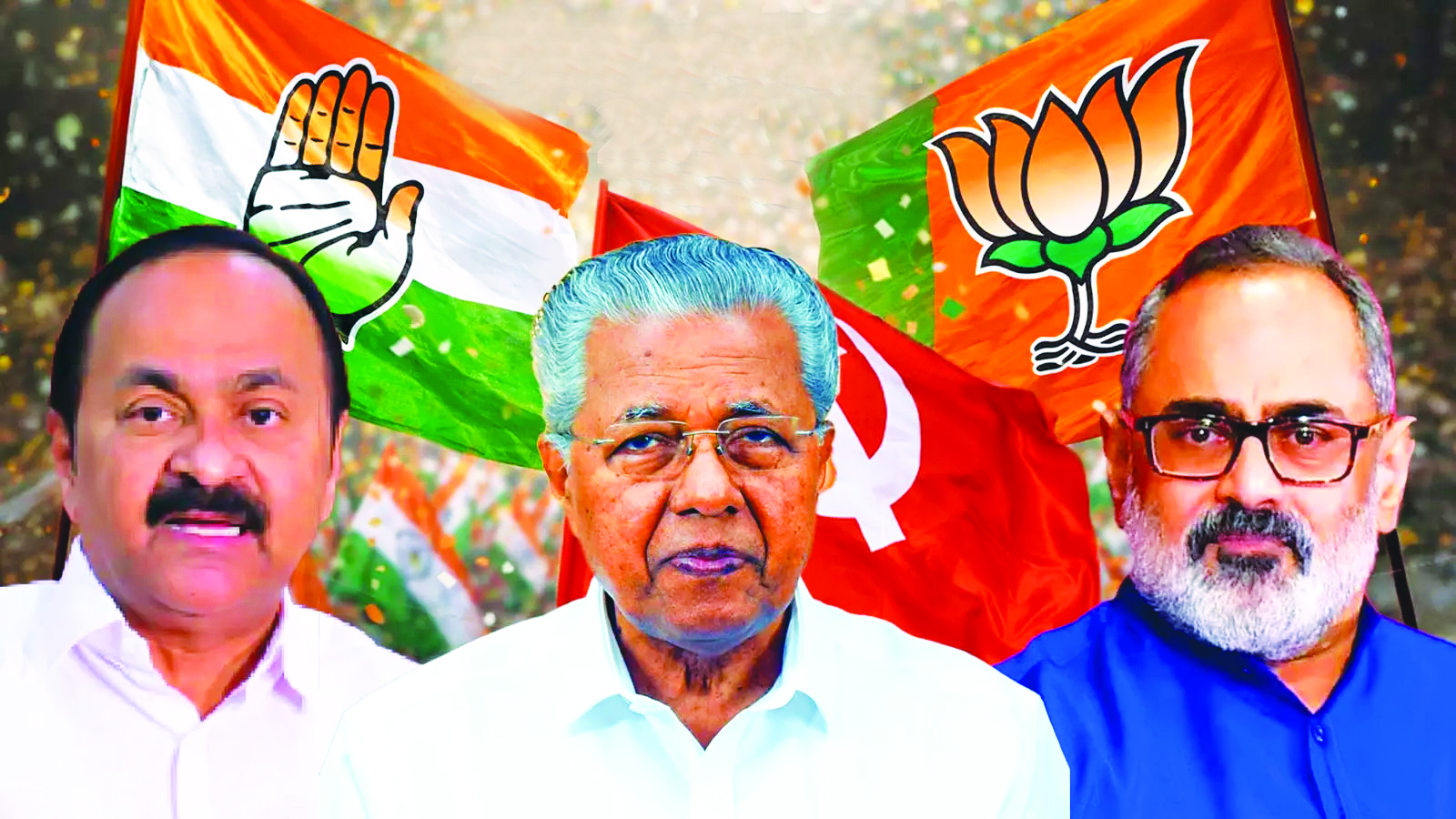 केरळमध्ये सध्याच्या घडीला सत्ताधारी लेफ्ट डेमोक्रॅटिक प्रâंट (एलडीएफ) विरुद्ध काँग्रेसच्या नेतृत्वातील युनायटेड डेमोक्रॅटिक  फ्रंट (यूडीएफ) यांच्यात थेट लढत होत आहे. तर भाजपच्या नेतृत्वात नॅशनल डेमोक्रॅटिक अलायन्स (एनडीए) दंड थोपटतांना दिसतो. इथे एलडीएफमध्ये पिनराई विजयन यांच्या नेतृत्वात सीपीआय(एम) ८६ जागांवर तर अन्य जागांवर सीपीआय आणि अन्य डावे पक्ष निवडणूक लढत आहे. यूडीएफमध्ये काँग्रेसचे केरळ विधानसभेतील विरोधी पक्षनेते वडासेरी दामोदरन सतीसन यांच्या नेतृत्वात इंडियन युनियन मुस्लिम लीग आणि अन्य छोटे पक्ष निवडणूक लढत आहे. भाजपचे प्रदेशाध्यक्ष राजीव चंद्रशेखर मेनन यांच्या नेतृत्वातील एनडीए जवळपास सर्वच जागांवर निवडणूक लढत आहे. एकटी भाजप शंभरावर जागांवर लढत आहे. या राज्यात २०१६पासून एलडीएफची सत्ता आहे. २०२१मध्ये पिनराई विजयन सलग दुसर्‍यांदा सत्तेत आलेत. आता तिसर्‍यांदाही ते सत्तेत येतील असे मतदानपूर्व सर्वेक्षणाचे अंदाज असले तरी यूडीएफ जोरात लढत देताना दिसत आहे. बहुतेक सर्वेक्षणांमध्ये एलडीएफ आणि यूडीएफ अतिशय जवळ असल्याचे चित्र आहे काही सर्वेक्षणांत एलडीएफला ६८-७३ जागा, यूडीएफला ६४-७० जागा मिळण्याचा अंदाज व्यक्त करण्यात आला आहे.