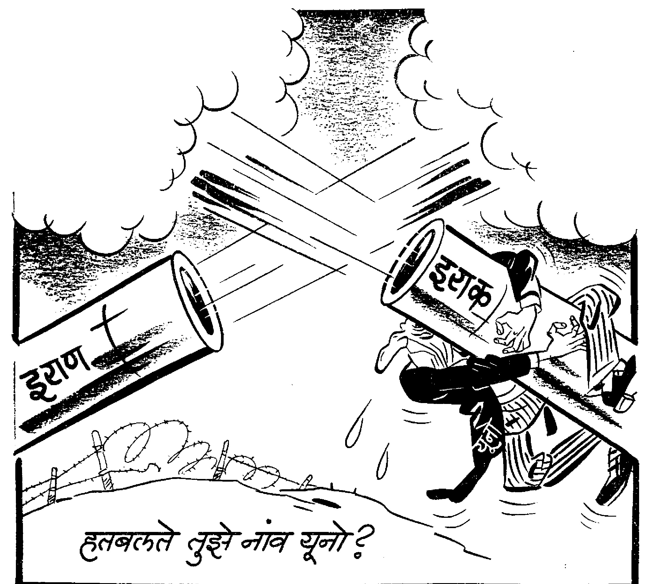 ५ ऑक्टोबर १९८० या तारखेच्या मार्मिकच्या मुखपृष्ठावरील हे व्यंगचित्र. प्रâी प्रेस जर्नलचा काळ वगळता बाळासाहेबांनी नंतरच्या काळात, विशेषत: मार्मिकच्या मुखपृष्ठांवर कायम स्थानिक मुद्द्यांवरची व्यंगचित्रे काढली. वाचकवर्ग आणि शिवसेनेचा विचार पोहोचवण्याची गरज हे लक्षात घेऊन त्यांनी ही मर्यादा आखून घेतली असणार. पण, अधून मधून क्वचित कधी त्यांनी आंतरराष्ट्रीय विषयांवर मुखपृष्ठचित्रे रेखाटली, ती पाहिली की त्यांची आंतरराष्ट्रीय स्तरावर ख्याती का होती, ते लक्षात येतं. इथे इराण इराक युद्धाशी संबंधित मुखपृष्ठ रेखाटताना त्यांनी युद्धाचा सगळा अर्थ, विध्वंस, व्यापकता हे सगळं फक्त दोन धडाडलेल्या तोफा आणि त्यांच्यातून तयार झालेले धुराचे लोट यांतून समर्पकपणे दाखवून दिलेलं आहे. तेव्हाची युनो म्हणजे संयुक्त राष्ट्र संघ ही आजची यूएन म्हणजे संयुक्त राष्ट्रे ही संघटना दुसर्या महायुद्धानंतर राष्ट्रांमधील संघर्षांवर आंतरराष्ट्रीय वचक ठेवण्याच्या हेतूने स्थापन झाली होती. पण ती कायमच अमेरिकेच्या ताटाखालचं मांजर बनून राहिली आणि त्या देशाच्या दंडेलीकडे तिने कायम दुर्लक्ष केलं. त्यामुळेच इतर देशही तिला जुमानत नव्हते. इथे इराण-इराक युद्धामध्ये घाबरून तोफेला बिलगलेल्या युनोचं अफाट व्यक्तिरेखाटन बाळासाहेबांनी केलेलं आहे. तिचं सगळीकडे खुपसलं जाणारं लांब नाक विशेष लक्षणीय. आज अमेरिकेने व्हेनेझुएलाची राजवट बदलून देशच ताब्यात घेतला, इराणवर हल्ला चढवला, पण कुठूनही संयुक्त राष्ट्रे काय करतायत असा प्रश्नही आला नाही, इतकी ही संघटना आज निष्प्रभ झालेली आहे.