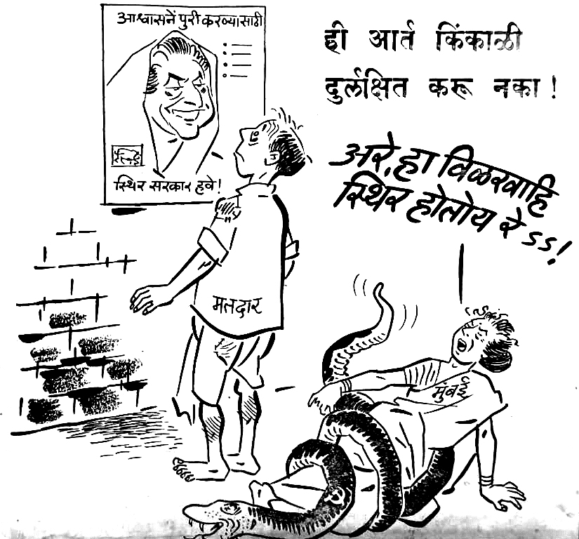 राष्ट्रीय बाणा ही तशी काही वाईट गोष्ट नाही. पण, संघराज्यात केंद्रातल्या सरकारकडून एखाद्या राज्याची जाणीवपूर्वक लूट आणि गळचेपी होत असेल, प्रादेशिक अस्मितेला नख लावलं जात असेल, तर अशावेळी राष्ट्रीय बाण्याच्या नावाखाली संघर्ष करण्यापासून पळ काढणं हे आत्मघातकी ठरू शकतं. सध्या तर महाराष्ट्रच नव्हे, तर संपूर्ण दक्षिण भारताला लुटून उत्तर भारतातल्या कायमस्वरूपी बिमारू असलेल्या राज्यांच्या घशात भरभरून निधी ओतणं सुरू आहे. हिंदी भाषा रेटून महाराष्ट्राची मराठी ओळख पुसण्याचा प्रयत्न केला जात आहे. मुंबईवर तर आजवरच्या सर्वच सत्ताधीशांचं फारच ‘प्रेम.’ ही सोन्याची अंडी देणारी कोंबडी सांभाळायची महाराष्ट्राने आणि तिची अंडी केंद्र सरकार पळवणार असा कारभार बिनबोभाट सुरू आहे एमएमआरडीएच्या नावाखाली. एकेकाळी मुंबई महाराष्ट्रापासून वेगळी करण्याचं षड्यंत्र रचणारे सत्ताधारी होते. ते फारच भोळे म्हणायचे, असे कुटील सत्ताधारी आता लाभले आहेत. मुंबई फक्त नावासाठी महाराष्ट्रात ठेवायची आणि तिचा सगळा परिसर हिंदीभाषक बनवून तिच्या नाड्या बड्या शेठजींच्या हातात ठेवायच्या, मुंबईत मराठी माणूसच उपरा ठरवायचा, हे कारस्थान सुरू आहे. हे व्यंगचित्र बाळासाहेबांनी ५ मार्च १९७२ला रेखाटलं होतं. स्थिर सरकार हवं, अशी भूल तेव्हा इंदिराजी घालत होत्या. आता तर स्थिर हवं, डबल-ट्रिपल इंजीन सरकार हवं, नाहीतर बघतोच तुमचा कसा विकास होतो ते, असल्या धमक्या देणारे नीच सत्ताधारी आहेत. मुंबईत शिवसेनेने लोकहितकारी राजवट कशी असते, याचा वस्तुपाठ घालून दिला होता. त्यात मराठी-अमराठी, हिंदू-मुसलमान असा भेदही केला नव्हता. मुंबईकरांनी हे लक्षात ठेवून मतदान केलं नाही, तर मराठी माणसाला यापुढे मुंबईत ताठ मानेने चालता येणं कधीच शक्य होणार नाही, याची पक्की गाठ मनाशी बांधून ठेवा.