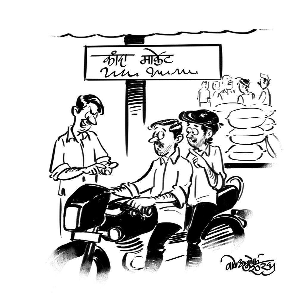 ‘मला पण अर्धा-एक किलो कांदे घे बरं का नम्या?’ अर्ध्या बालहट्ट चालू ठेवतो.