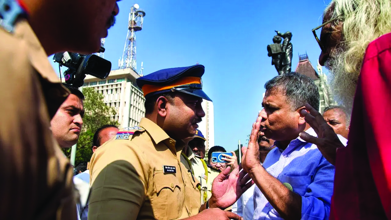 मोर्चा विस्कळीत स्वरूपात मुख्यालयावर पोहोचल्यावर पोलिसांनी आंदोलकांवर शेळ्या मेंढ्या हाकतात, तसे बाजूच्या आजाद मैदानात ढकलले, त्यातून माजी खासदार व मुंबई विद्यापीठाचे कुलगुरू भालचंद्र मुणगेकर, वय वर्ष ८०च्या आसपास आणि कॉम्रेड प्रकाश रेड्डी पण सुटले नाहीत. आयुक्त भूषण गगराणी यांनी शिष्टमंडळाची भेट आधी खूप टाळाटाळ करून आणि नंतर फार मोठ्या उपकारकर्त्याच्या आविर्भावात घेतली आणि कुठलेही ठोस आश्वासन दिले नाही. यातून महापालिकेच्या आणि पर्यायाने ती ताब्यात ठेवलेल्या राज्य सरकारच्या एकंदर आविर्भावाबद्दल स्पष्ट झालेल्या काही बाबी.