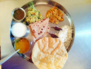 सकाळी सात ते अकरा या वेळेत इथे नाश्ता मिळतो. त्यानंतर दुपारी १२ ते दुपारी दोन या वेळेत जेवण मिळते. इथल्या जेवणाची गोष्ट देखील वेगळी. पोळी, भात, भाजी याच्याबरोबर येणार्‍या सांबार, रस्सम या पदार्थामुळे जेवणाची लज्जत अधिकाधिक वाढत जाते. इथल्या जेवणात आमसूल, गूळ यांना अजिबात एंट्री नाही. त्यामुळे हे जेवण गोड नसते. दर रविवारी फीस्ट म्हणून जेवणात शिरा दिला जातो. इथला पापडही चेन्नईवरून येतो. त्याची चव अन्य पापडांपेक्षा वेगळी लागते. दहीभाताच्या बरोबर देण्यात येणारी तळलेली मिरची (मोरमुळाय) हा प्रकार फारच भन्नाट आहे. ही मिरची तशीच खाल्ली तर तिखट लागले. मात्र, दहीभाताबरोबर तिची चव खुलते.