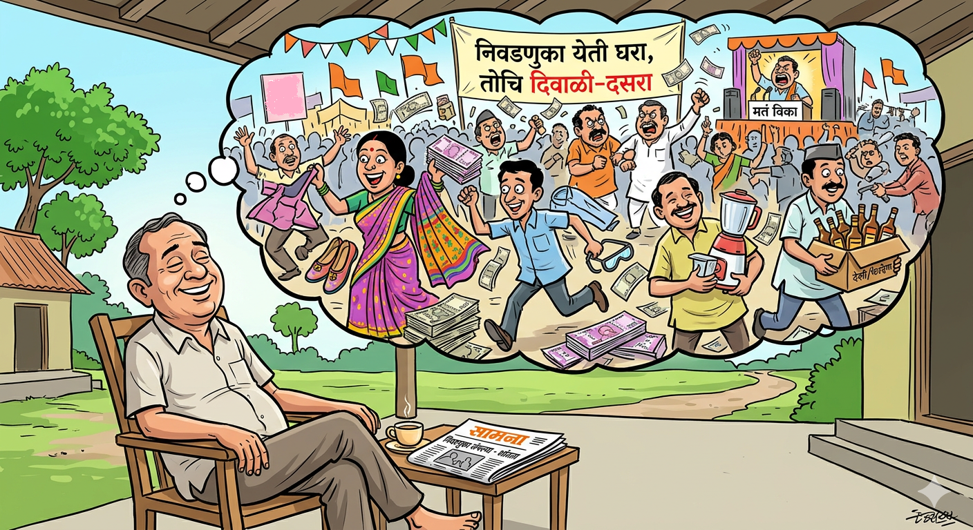 राज्यातल्या निवडणुका संपल्यावर माझा मानलेला परमप्रिय लाडका मित्र पोक्या याचं डोकं कधी नव्हे इतकं शांत झालं आहे. निवडणुका पार पडेपर्यंत तिच्या अनुषंगाने घडलेल्या अनेक गंमतीजमती आठवत पोक्या स्वतःशीच हसत असतो. कधी मूडमध्ये असला तर मलाही त्या गोष्टी सांगून हसवतो. अनेक चित्रविचित्र प्रकार त्याने निवडणुकीदरम्यान पाहिले, अनुभवले. पैशाच्या बंडलांच्या राशी पाहिल्या, ढीग पाहिले, मतदारांना पैशांच्या पाकीटांसह साड्या, पैठण्या, शर्ट-पॅन्ट पीस, चपला-बूट, गॉगल, मिक्सर, घरघंटी, गृहोपयोगी वस्तू, दारूच्या देशी-विदेशी बॉटल वाटल्या जाताना पाहिल्या. निवडणुका येती घरा, तोचि दिवाळी-दसरा हा मतदारांना आलेला स्वर्गानुभव पाहिला. मतांसाठी हपापलेले नेते आणि उमेदवार यांच्या परस्परांतील चढाओढी आणि कुरघोड्या पाहिल्या. पैसा फेकून मते विकत घेता येतात हे पाहिलं. पैशापुढे तत्व, निष्ठा, सत्य, न्याय, प्रामाणिकपणा यांची माती झालेली पाहिली. सत्तेचा माज आणि उन्माद पाहिला. खोटेपणा, गुंडागिरी, हल्ले, खूनबाजी पाहिली. स्वार्थ आणि हपापलेपणा पाहिला… आज काही वर्षांपुरते का होईना हे सारे शांत झालंय.